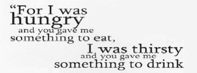 Contact Us“Then the righteous will answer him, ‘Lord when did we see you hungry and feed you, or thirsty and give you something to drink? When did we see you a stranger and invite you in, or needing clothes and clothe you? When did we see you sick or in prison and go to visit you?’ The King will reply, “I tell you the truth, whatever you did for one of the least of theses brothers of mine, you did for me.”